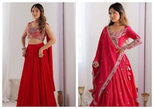 When it comes to Indian festive wear, few colors command vast attention and that’s what the color red does. Especially in fashion, where the red lehenga cholis dominate the ethnic wear market. From weddings to Garba nights, the red lehenga continues to reign supreme. It’s more than just a traditional choice nowadays. What was once used as an association to cultural beliefs has now transformed into being people’s favorite.