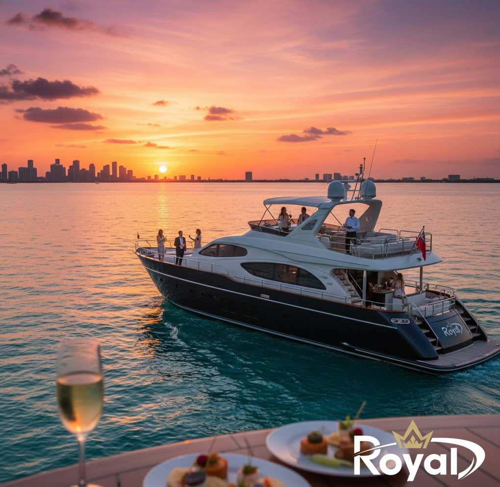 Royal Yachts Miami is a company providing charters for sunset with personal chefs, catering, and crews. Individual yacht booking allows guests who have to redefine their luxury evenings by spending their time in a golden and tranquil retreat on the water.