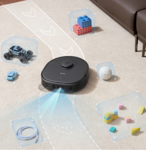 Children tend to leave toys and items all over the house, and the last thing you want is your robot vacuum getting stuck or breaking. Shop for vacuums with advanced obstacle detection. eufy’s AI.See™ Obstacle Avoidance and 3D MatrixEye™ allow devices such as the S1 Pro or X10 Pro Omni to detect and avoid toys, shoes, wires, blocks or random mess on the floor, even in low light. This leaves you nothing to move in advance for non-stop cleaning.